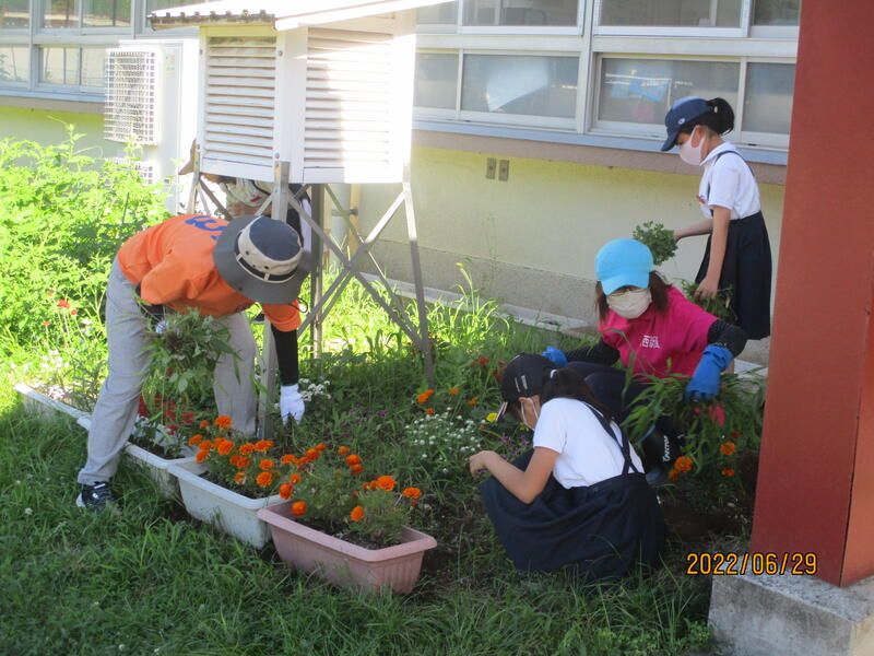 本日(6/29)は、朝から学級園の草取りを行いました。