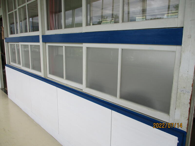校務の先生に、廊下の窓枠を紺色に塗っていただきました。これまで黄緑色でしたが、今回紺色を入れたことで、廊下がすっきりと、かつ締まった印象になりました。校務の先生には、学校のあらゆる所を綺麗にしていただいています。とてもありがたいことです。