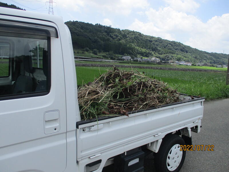 本日(7/29)、地域コーディネーターの内村さんが、うさぎのベット(ねどこ)の稲わらをたくさん持ってきてくださいました。