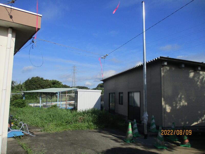 昨日(8/8)、学校の電信柱2本が交換されました。