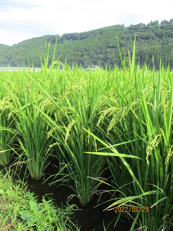 すると、稲穂が頭を垂れ、順調に生長していました。この暑い夏には、外牧の村元さんが水の管理もしてくださいました。