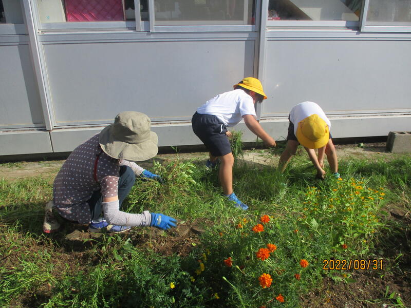 本日(8/31)の朝から20分間、学級園の草取りをしました。