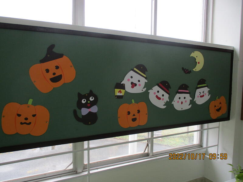 10月に入り、階段の踊り場の掲示板も、ハロウィーン仕様となりました。楽しい学校の掲示に、自然とワクワク感や笑みがわいてきます。
