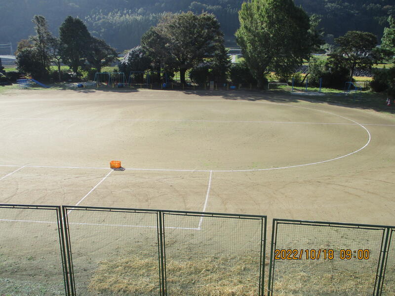 本日(10/18)、早朝から体育主任が運動場にラインを引き、コンテナを置いていました。コンテナにはドッジボールを3個入れていました。