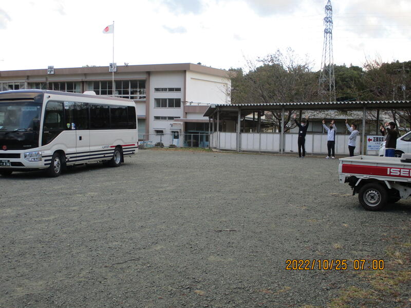 本日(10/25)午前7時、6年生が修学旅行(長崎県)に出発しました。大津南小と合同で、1泊2日の旅行となります。