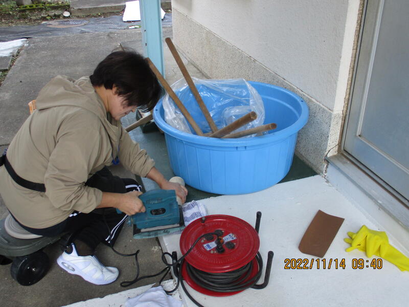 本日(11/14)に、校務の竹本先生に杵を磨いてもらいました。