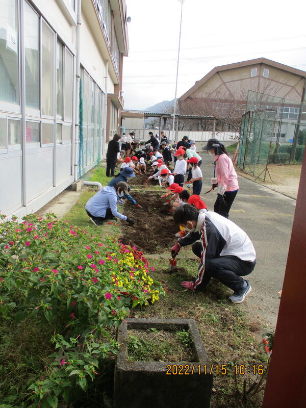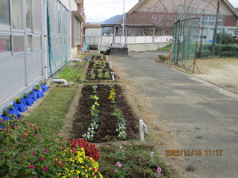 今回は、花植えです。移植ごてで穴を掘り、花の苗を植えました。今から寒くなりますが、学級園は賑やかなってくると思います。みんなでしっかりとお世話をしたいと思います。