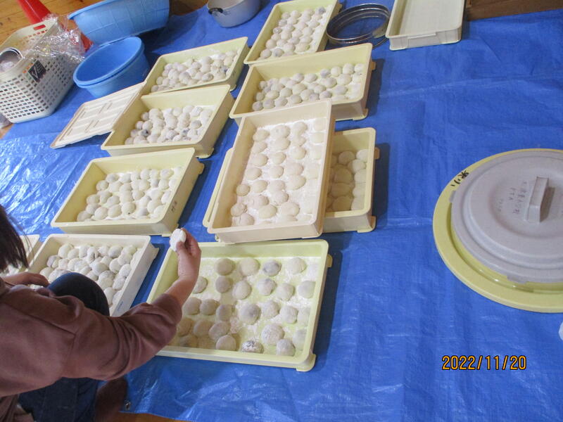 親子で餅つき② 丸めて 完成!