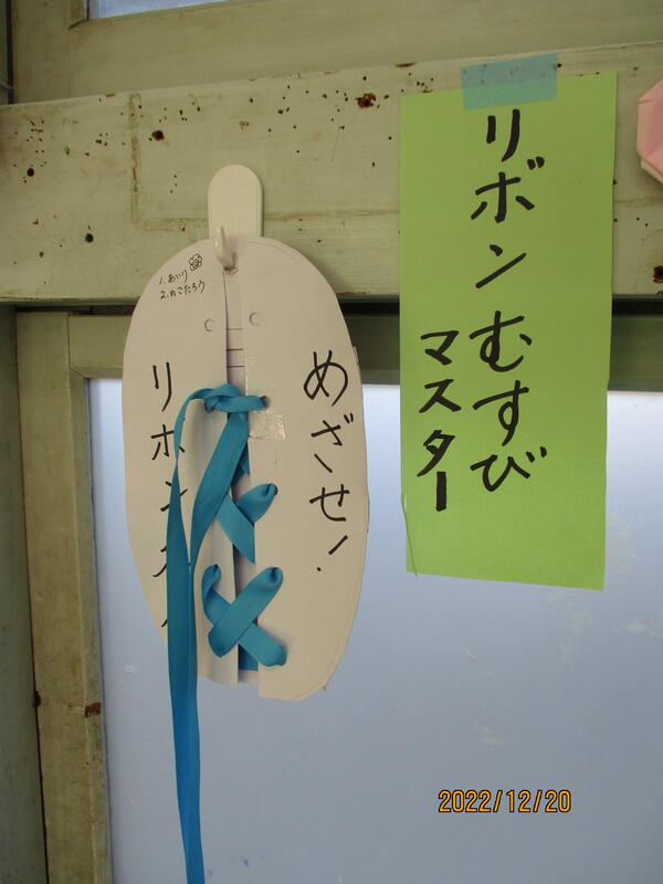 小2は、「リボン結びマスター」や「かけ算マスター」の取組をしています。“靴や服のリボンが結べること”や“かけ算九九を思い通り使えるようになること”など、意図的に計画的に指導しています。