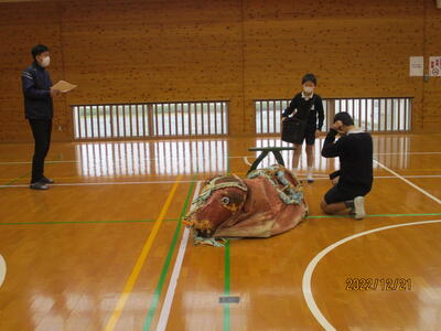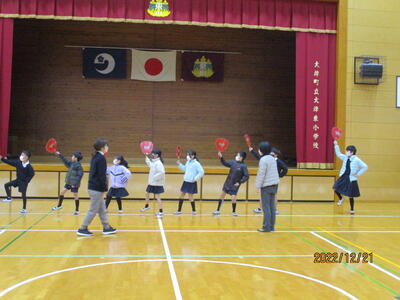 本日(12/21)、小3以上の児童は2回目の“牛舞い練習”をしました。今回は本校の職員のみで指導しました。