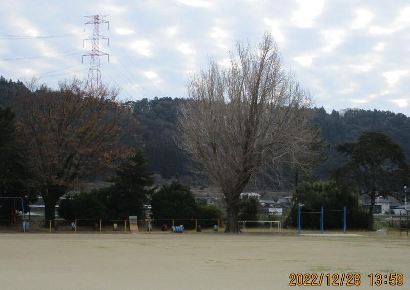 運動場に目を向けると、銀杏等の樹木が落葉し、暖かな春を待ちわびているようです。