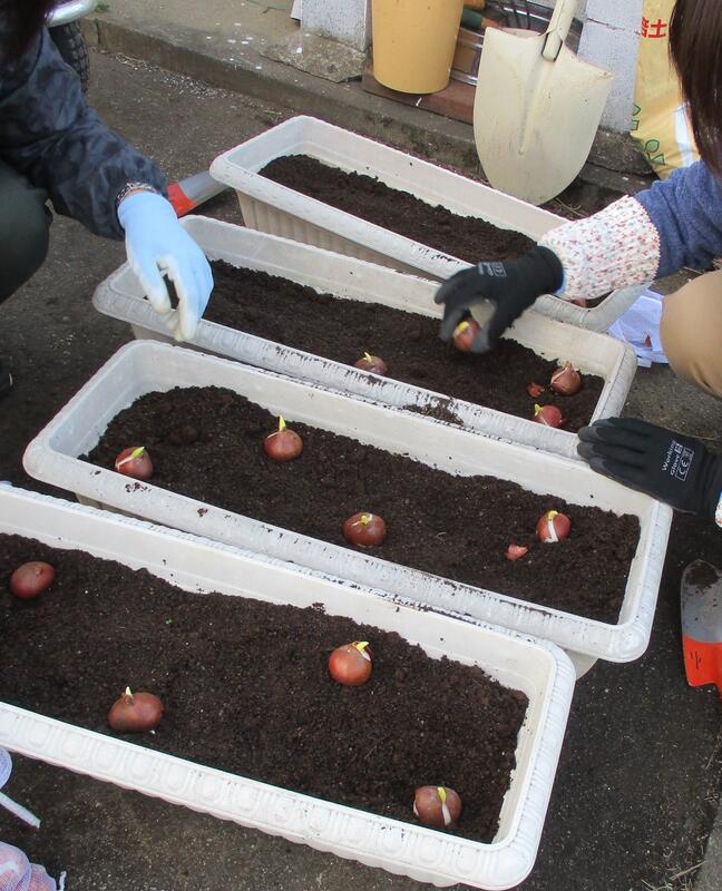 そして、先生方は、これからの学校行事で使用するチューリップの球根を植えていました。