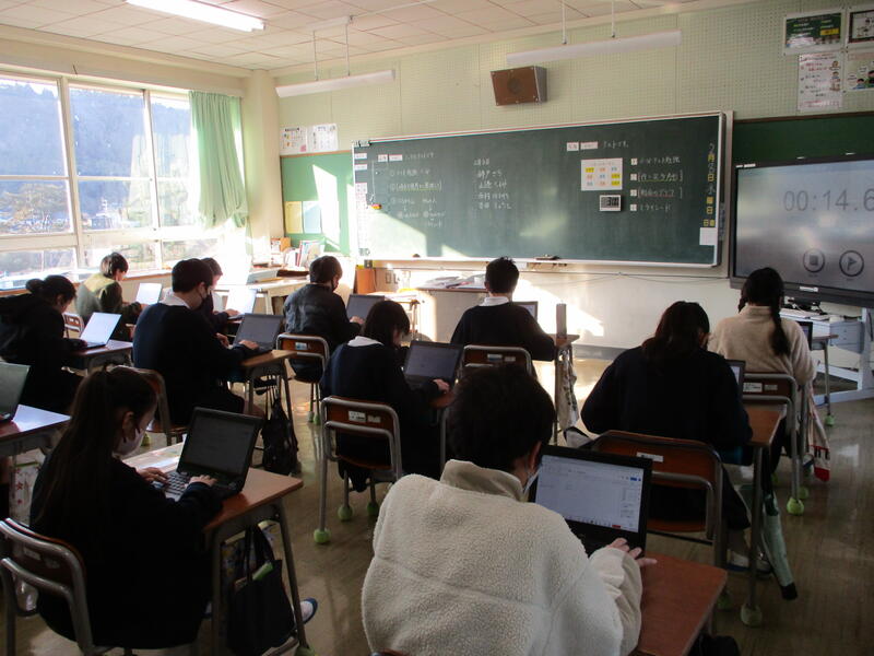 子どもたちがリズムよく入力するキーボードの音が教室中に響きました。