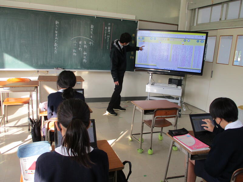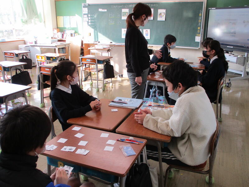 本校の3年以上は複式学級ですが、この時間はそれぞれ学年単独で学ぶ時間としました。子どもたちは、担任や学習支援員の他に、ALTや英語専科の先生方と楽しく学んでいました。