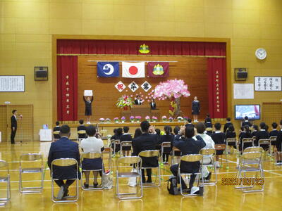 まず、各学年の代表が修了証を受け取りました。その堂々とした姿に、成長を感じました。その後、生徒指導部や保健指導部から、春休みの生活について確認しました。