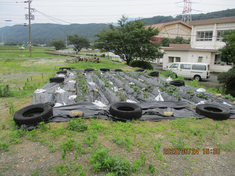 なお、昨日(23日)の放課後には、先生方が芋畑の通路にマルチを張っていました。梅雨明けや夏休み明けに、苗が草に覆われないためです。こういった先生方の裏方としての取組に、校長として頭が下がります。東小の先生方は、とても素晴らしいということも一言お伝えいたします。