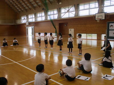昨日(6/25)、劇団きらら(代表:池田さん)の5名の方々をお迎えして、3年生以上の児童は演劇ワークショップを体験しました。