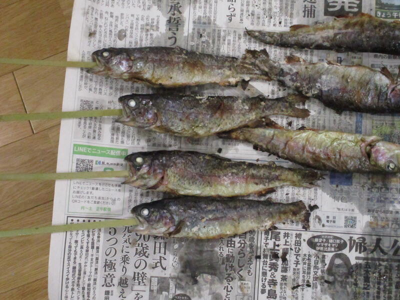 ニジマスを“捕まえ”“炭で焼いて”“みんなでいただく”