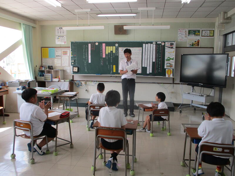 本日(9/6)の1時間目、1年生はタブレットを使った学習を、2年生は“つなぐ言葉”を使った会話の学習を、3年生は“I like 〇〇”を使った外国語学習を、4年生は水生生物探しを、5・6年は学習リーダーを中心にした国語の学習をしていました。みんな、意欲的に学んでいました。