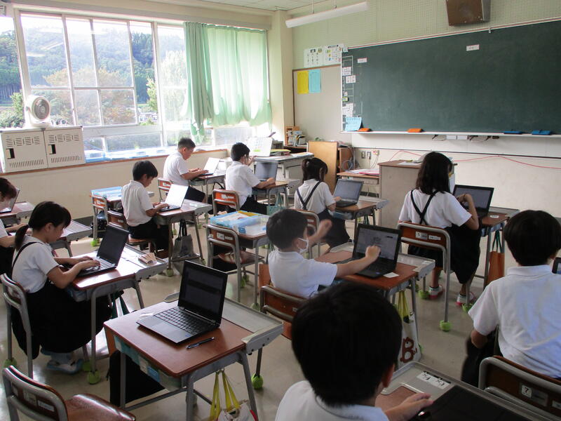 本日(9/6)の1時間目、1年生はタブレットを使った学習を、2年生は“つなぐ言葉”を使った会話の学習を、3年生は“I like 〇〇”を使った外国語学習を、4年生は水生生物探しを、5・6年は学習リーダーを中心にした国語の学習をしていました。みんな、意欲的に学んでいました。