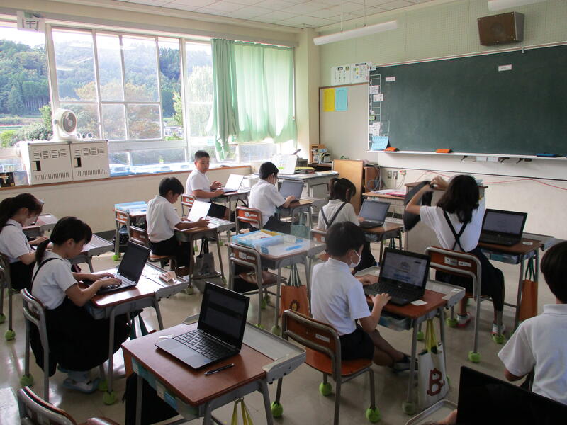 大津町の小中学校では、盛んにタブレットを活用しています。