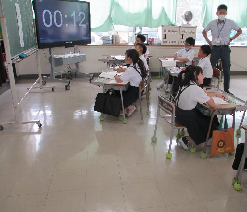 先日(9/28)、3年生は国語「サーカスのライオン」を、4年生は国語「一つの花」を学習していました。担任と学習支援員の先生方が連携して指導する複式授業です。