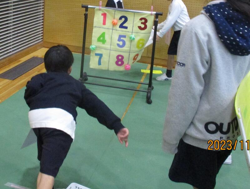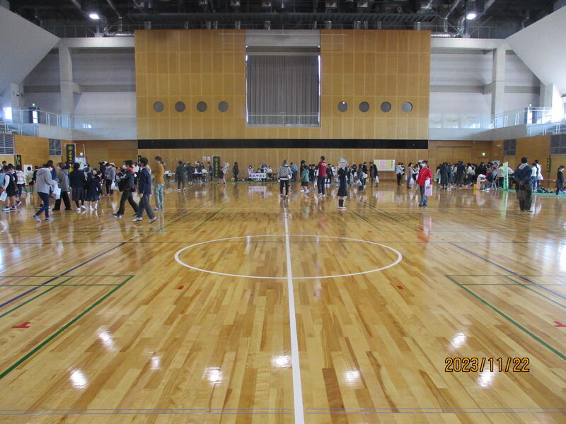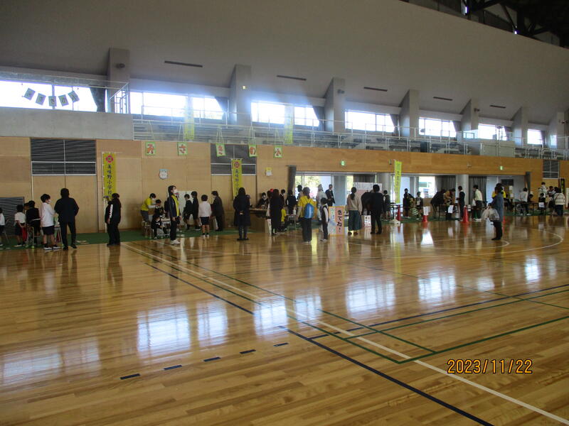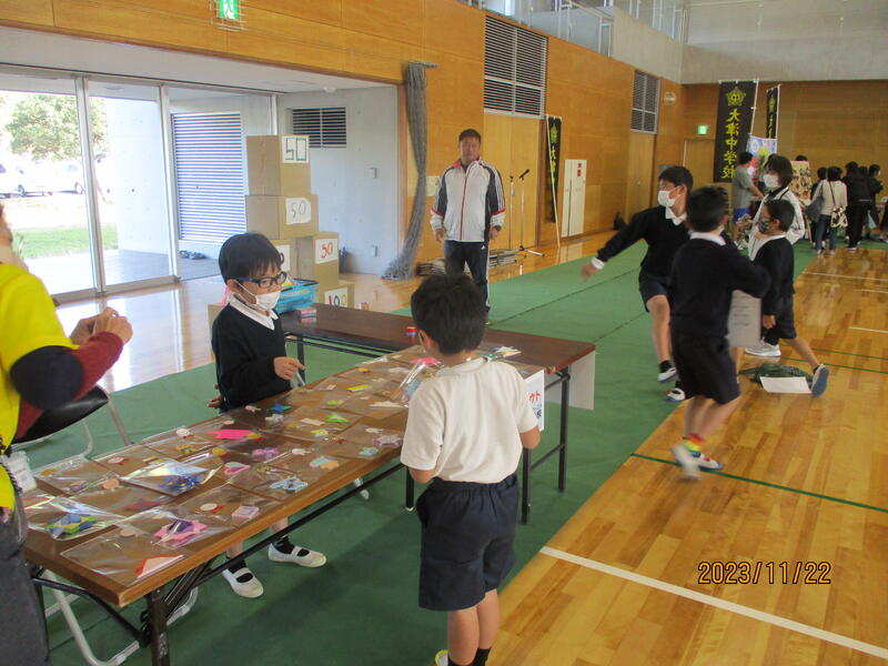 本日(11/22)、大津町なかよしフェスタがスポーツの森アリーナでありました。特別支援学級の子どもたち(100名超)が一堂に会しました。本校の子どもたちは、この日のために“的当てゲーム”や“景品(アイロンビーズや折紙)”を準備してきました。