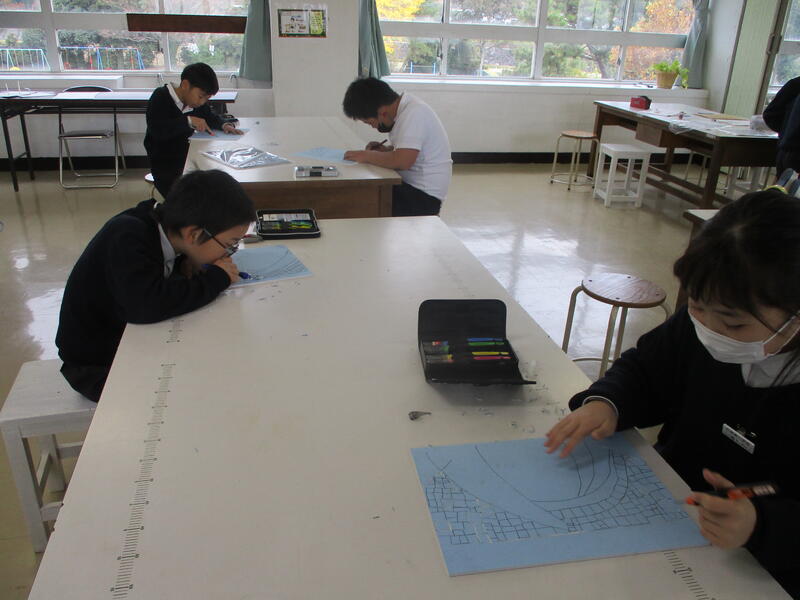 本日(11/30)、3・4年生が図工で版画をしていました。