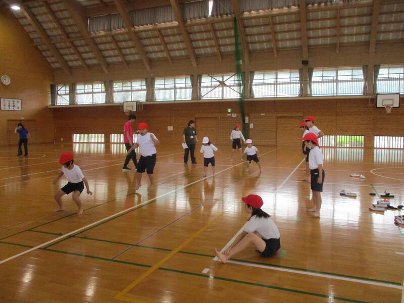 体育館では反復横跳びなどを、運動場では50m走などを計測しました。みんな、精一杯取り組んでいました。