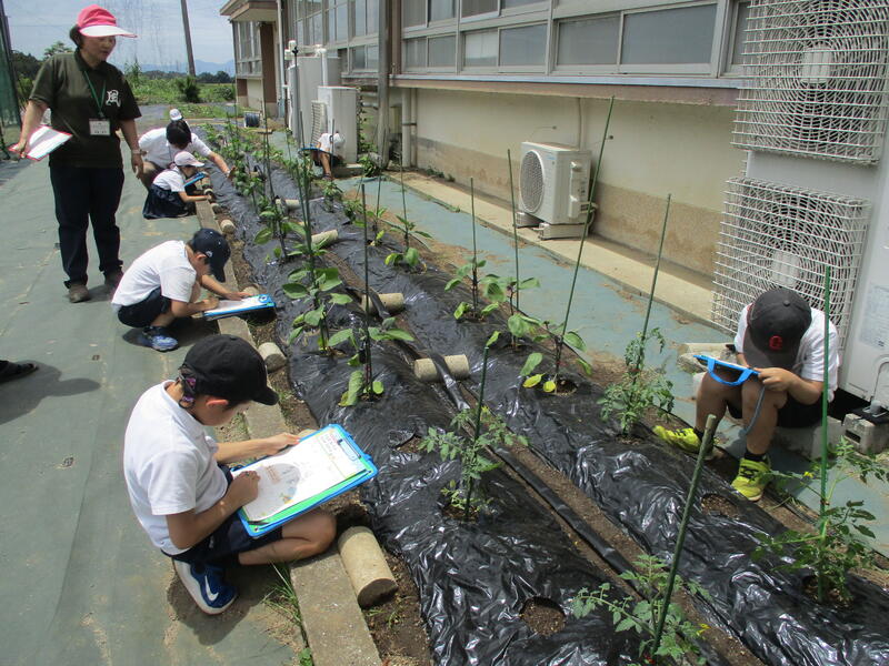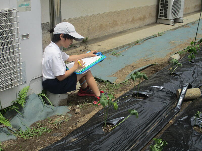 昨日(5/30)、2年生は野菜の苗を観察し、その成長記録をとっていました。