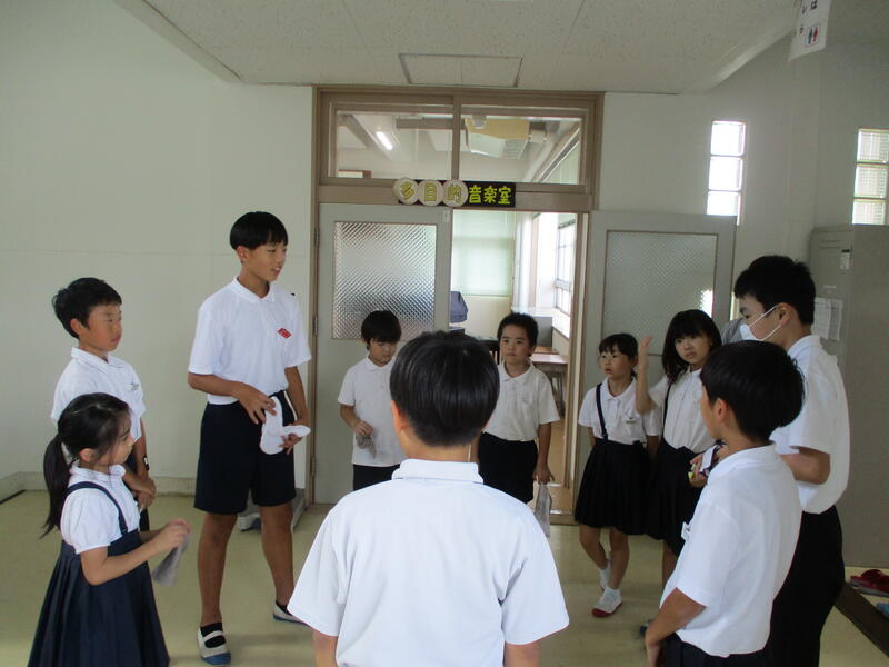 それぞれの掃除場所を異学年のみんなで相談しながら掃除をします。本校はとても広い敷地ですが、全児童数37名のみんなで協力して頑張っています。