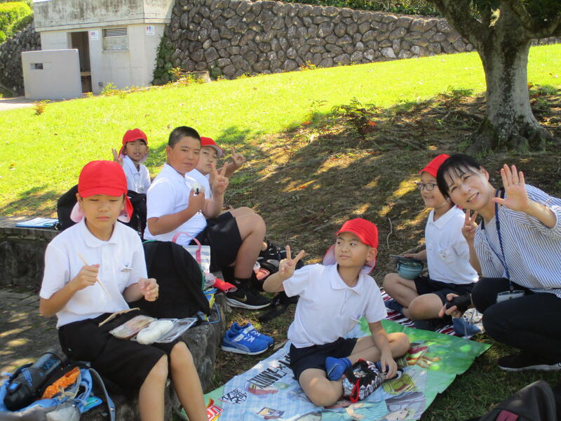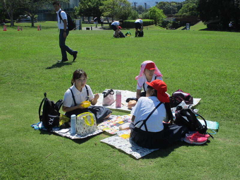 南小のお友達と、青空の下でおいしいお弁当を食べました。