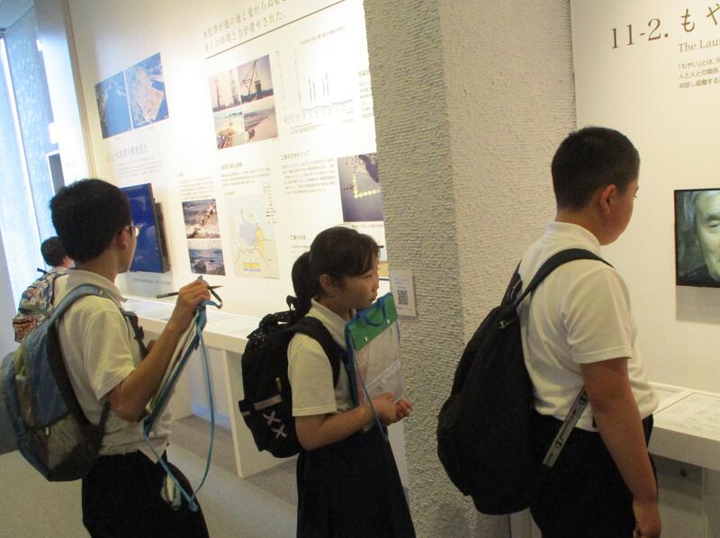 その後、水俣病資料館で展示を見ながら学びました。まっすぐ歩けない猫の動画を見ました。