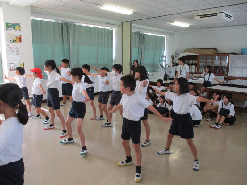 本日(9/30)、運動会練習をしました。今日の練習は、全校で行う表現運動“ソーラン節”です。3年生以上が動画に合わせて踊ります。1・2年生はそんな様子を見て学んでいました。