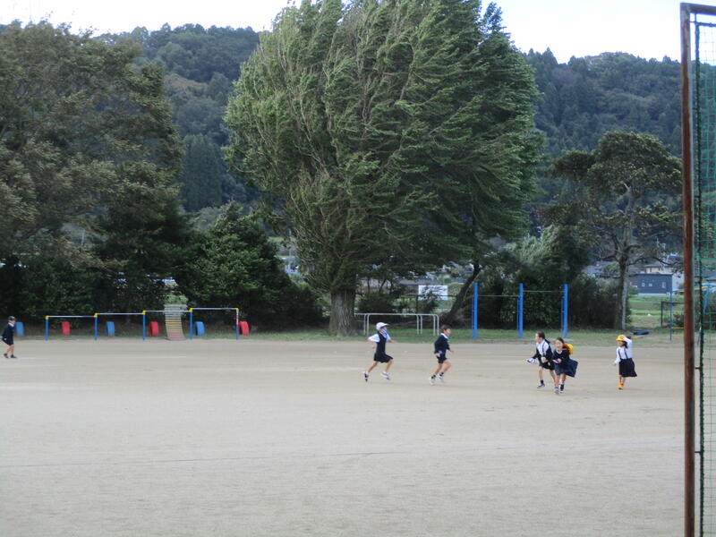 そんな中、カバンを置いて急いで校庭に出てくる1・2年生がいました。風にも負けず、校庭を駆け回っています。楽しそうな子どもたちに、朝から元気を貰いました。