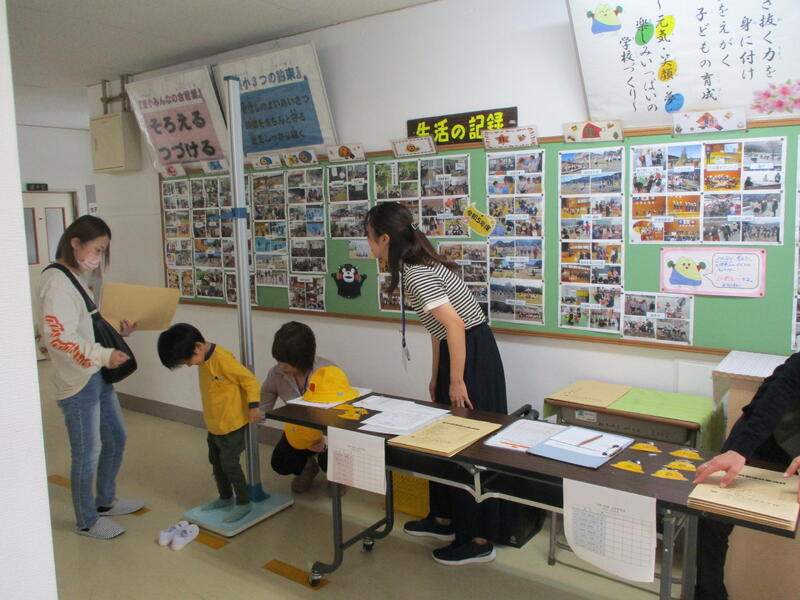 本日(10/31)、就学時健診をしました。令和7年度に入学予定の14名(小規模特任校制度利用5名、区域外就学1名を含む)は緊張した面持ちで来校しました。しかし、学校に慣れるのも早かったようです。読み聞かせを聴いたり、おもちゃで遊んだりしながら、最後は笑顔で帰りました。
