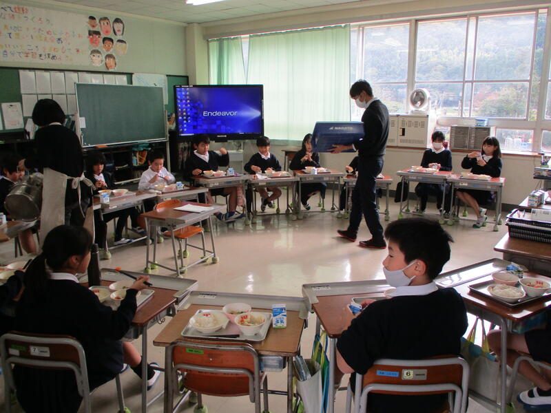 本日(12/2)の給食は、味噌おでんでした。温かく、とても美味しいおでん。みんな笑顔で食べていました。