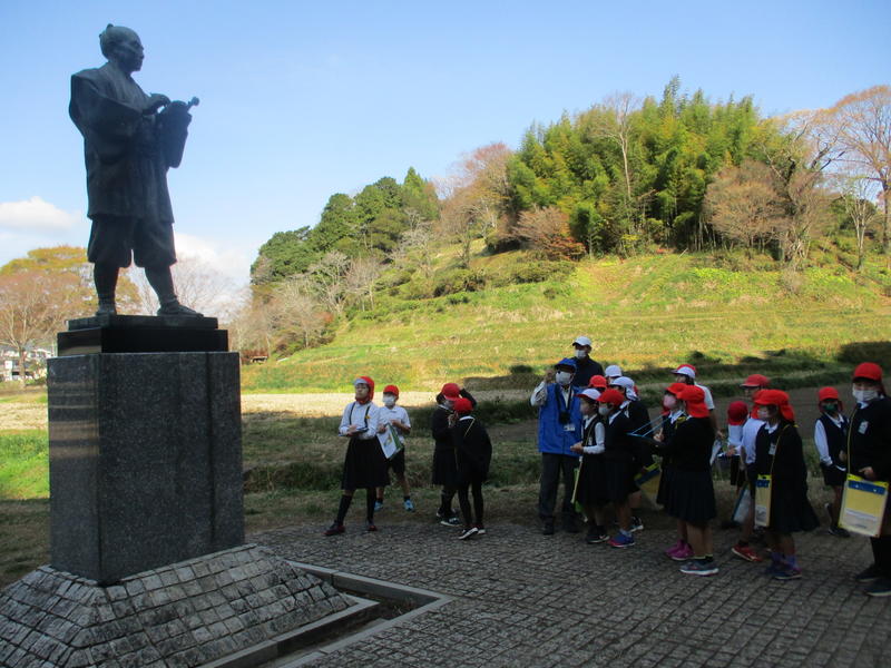現地で学習。ガイドさんからの説明に聞き入る子どもたち。