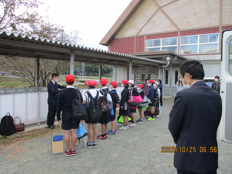 本日(10/25)午前7時、6年生が修学旅行(長崎県)に出発しました。大津南小と合同で、1泊2日の旅行となります。