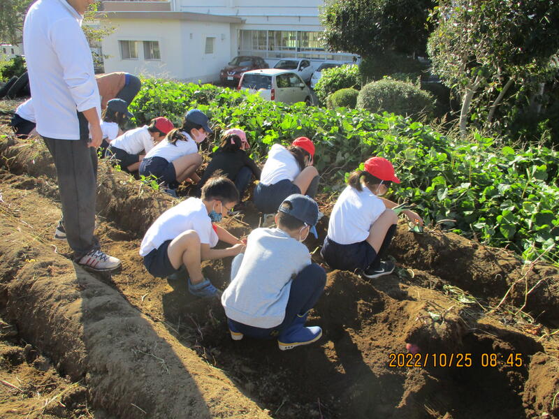 本日(10/25)、小1~小4は“からいも掘り”をしました。