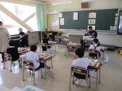 本日(4/17)、1年生にとって、小学校での初めての給食でした。