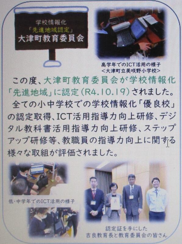 大津町教育委員会が学校情報化「先進地域」に認定されました。