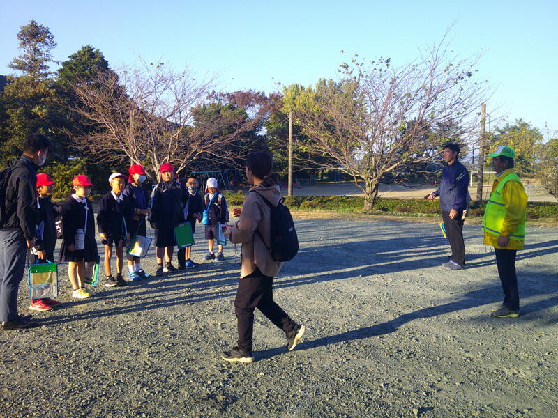 秋は、比較的天候もよく、見学旅行には最適な季節です。子どもたちは、元気に笑顔で出発しました。