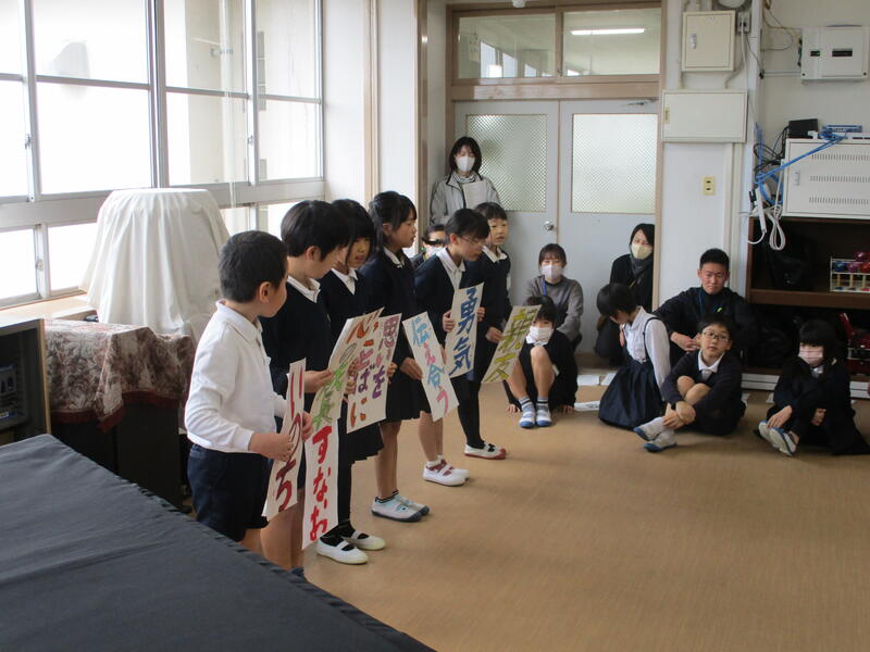 送別会では、縦割り班ごとに6年生へお礼のメッセージを読みました。どの班も、これまで昼休みなどに精一杯準備と練習をしていて、しっかりと伝えることができました。
