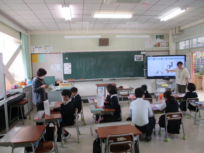 本日(4/11)の1時間目に、1・2年生は国語の学習をしていました。1年生も2年生も初めての複式授業ですが、担任の後藤先生が学習支援指導員の春木先生と連携して、上手に指導されていました。