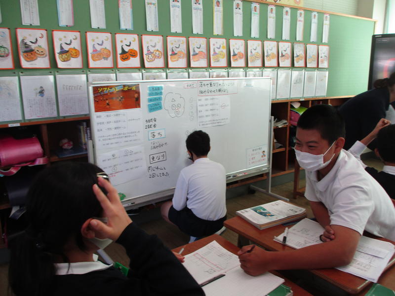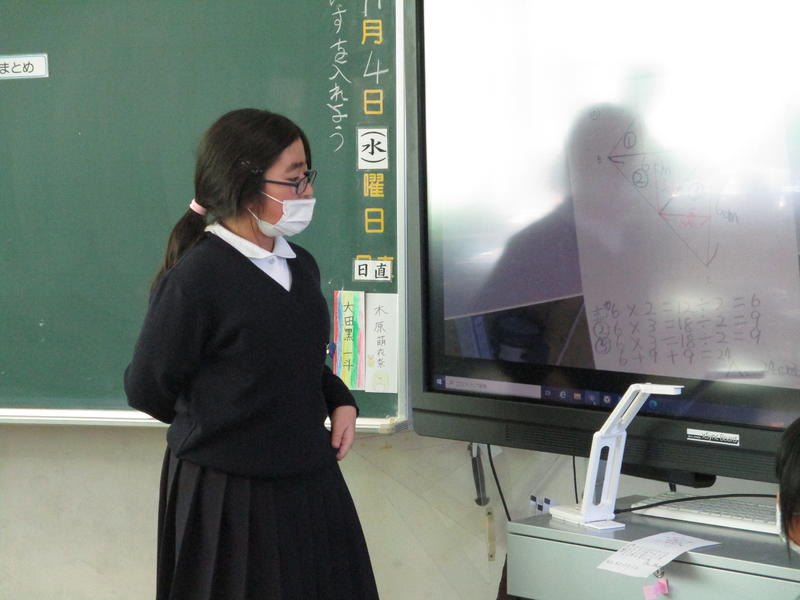 5,6年生研究授業 投稿日時 : 2020/11/06 higassi 11月4日(水)の2校時に、5,6年生で研究授業を行いました。教科は、算数。5年生「面積」6年生「場合を順序よく整理して」でした。 児童の疑問やつまづきを想定して、児童が協働的に解決し、表現を工夫することを目指しました。 5年生の発表活動 6年生の協働活動
