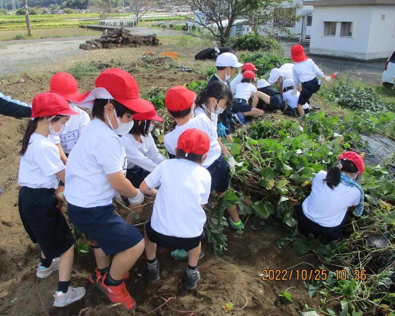 本日(10/25)、小1~小4は“からいも掘り”をしました。