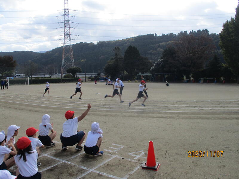 学習メニューは、徒走や応援団練習でした。特に、1年生は初めての小学校の運動会。緊張した面持ちでしたが、しっかりと走りきることができました。