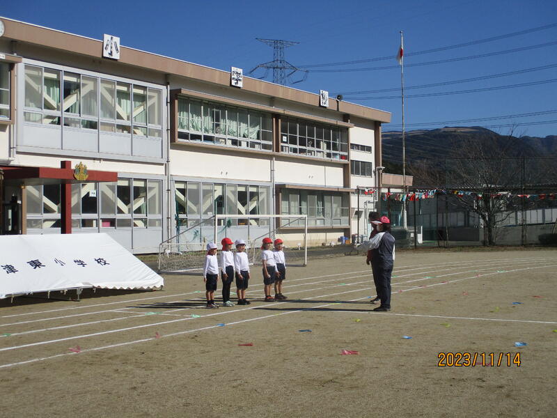 11/27は必ずミニ運動会で開会式をします。その際、1年生6名による“はじめの言葉”が見られます。乞うご期待!
