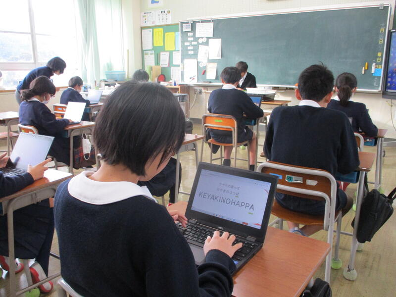 本日(12/6)の朝自習は、全学年タブレットへのタイピング練習でした。